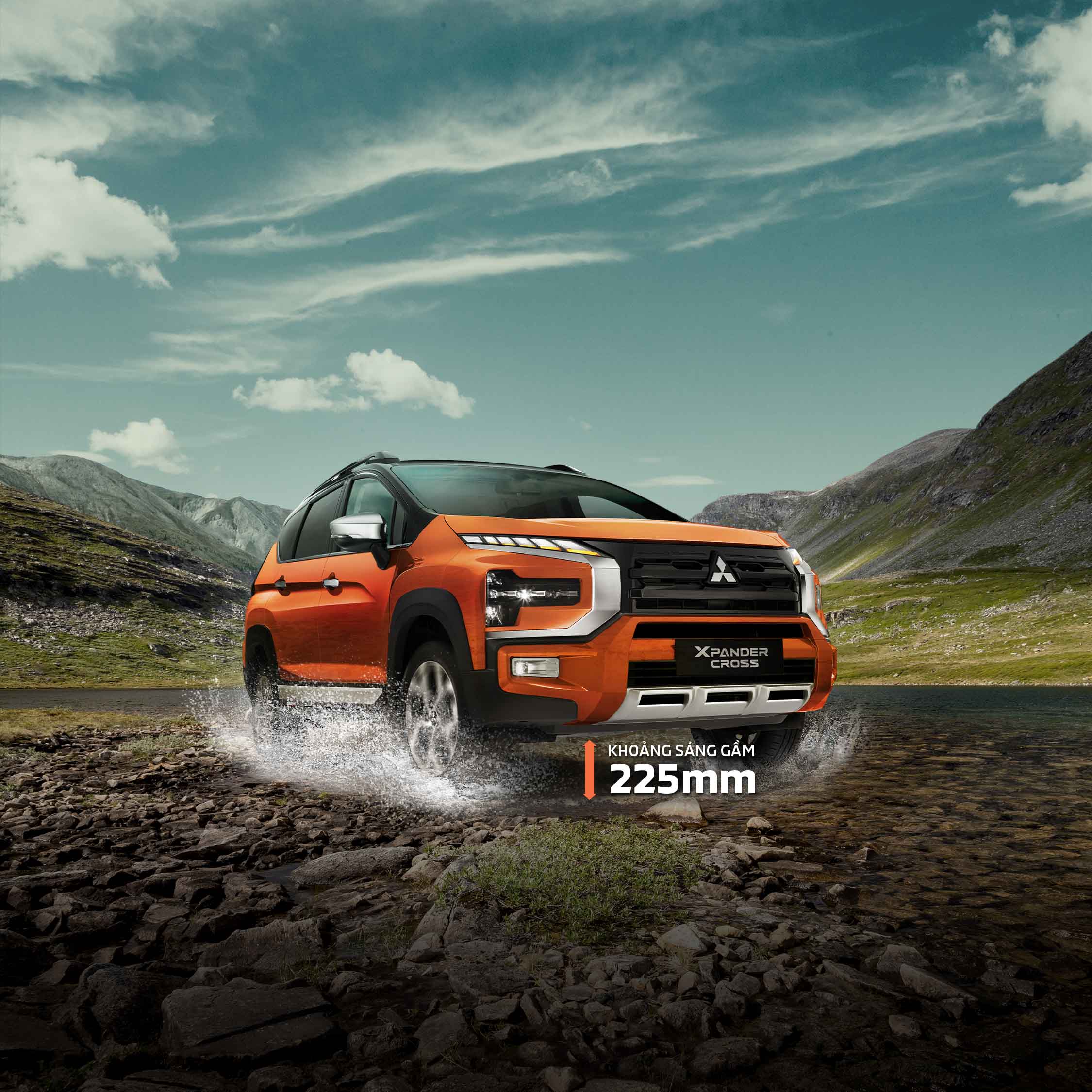 Dễ dàng di chuyển trên đường khó và nơi ngập nước: Nhờ khoảng sáng gầm cao nhất phân khúc 225 mm, Xpander Cross có khả năng lội nước đến 400mm. Góc tiếp cận và góc thoát tốt (22,4 và 28,1) mang đến lợi thế vượt chướng ngại vật tốt trên nhiều địa hình khác nhau.